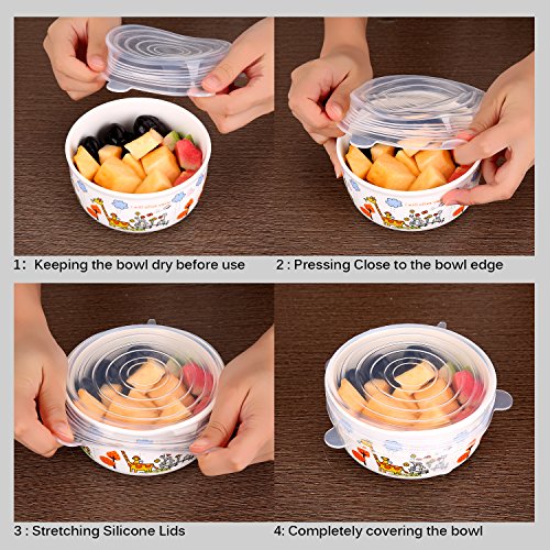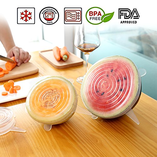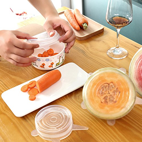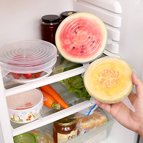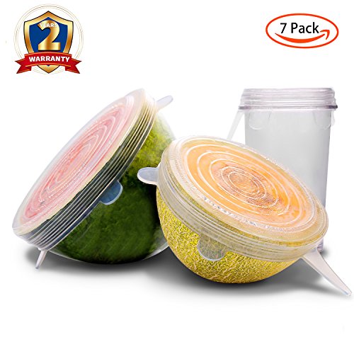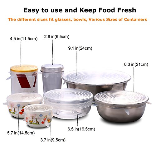 Gohoo Silicone Stretch lids (7pack Silicone Food Covers): ? Includes Exclusive XL size ? Keeping Food Fresh ? Easy to Use and Wash ? SAVE MONEY, using silicone lids and stop buying saran wrap and foil. ? Reusable, Durable and Expandable to Fit Various Sizes and Shapes of Containers The 7 pack different diameter sizes supply: ? 9.1 inch/ 24.0 cm diameter ? 8.3 inch/ 21.0 cm diameter ? 6.5 inch/ 16.5 cm diameter