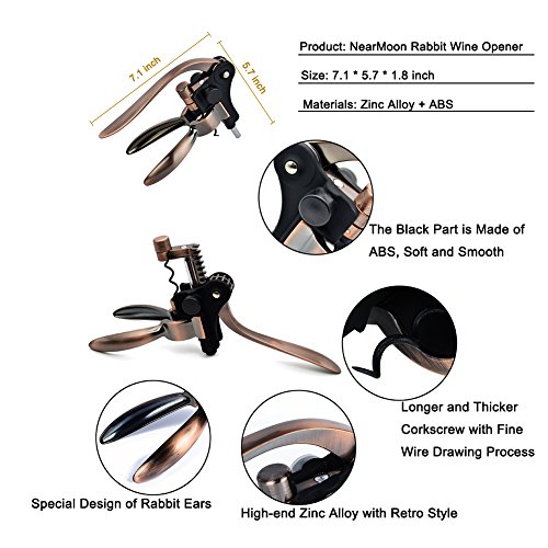 Studio : NM-RWO-001 Publisher : NM-RWO-001 Product Description Are you still vexing what present is perfect in most gift occasions? No more Vexing! Here is the answer - NearMoon 5 in 1 Rabbit Wine Bottle Opener is your excellent choice! Birthday, Wedding, Anniversary, Award Ceremony, Christmas Day, Monther's Day, Father's Day, Thanksgiving Day, any celebration and festivity you can think of, our wine opener can satisfied your demand.