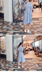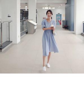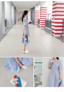 爽やかなストライプの膝丈ワンピース♪
