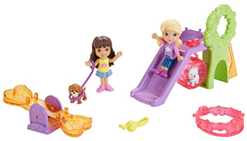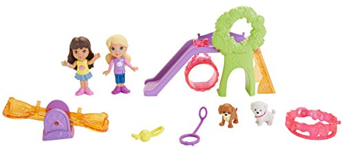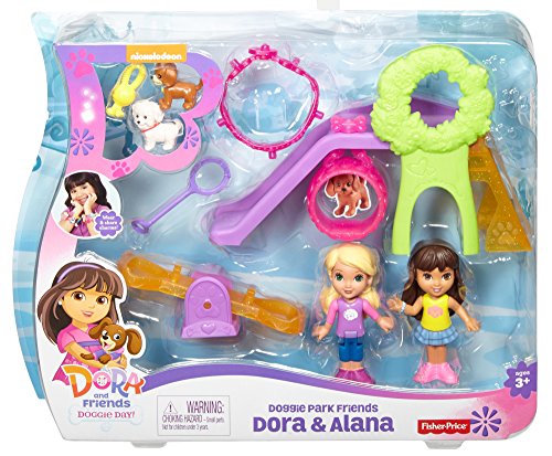 -. Feature : Everything you need for a Dora and Friends Doggie Day adventure! / Slide, swing and play with the pets at the playground! / Puppy figures can be worn on the included charm bracelet! / Includes Dora, Alana, their puppies Perrito and Rico, a seesaw, and a slide / Add to your Dora and Friends collection!