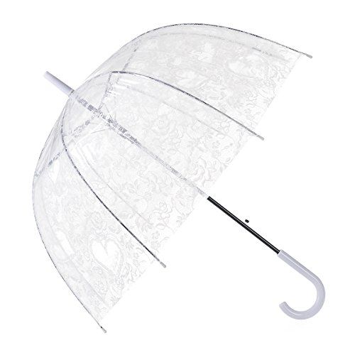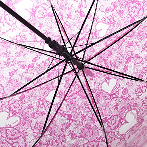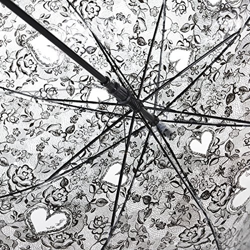 -. Brand : Remedios -. Department : womens -. Feature : Length:31.9"(81cm)when closed / Diameter:31.5"(80cm)when open / Cute bubble dome shape canopy with beautiful flower and love heart / Auto open and hook handle with matching colors / PVC canopy is completely waterproof and sturdy alloy ribs are highly durable and capable of withstanding wind and rains -. Model : LWUSGYS160005A -. ProductGroup : Apparel -. ProductTypeName : LAGE -. Title : Remedios Automatic Open Transparent Clear Flower Lace Bubble Dome Umbrella