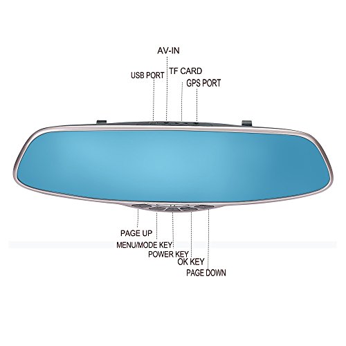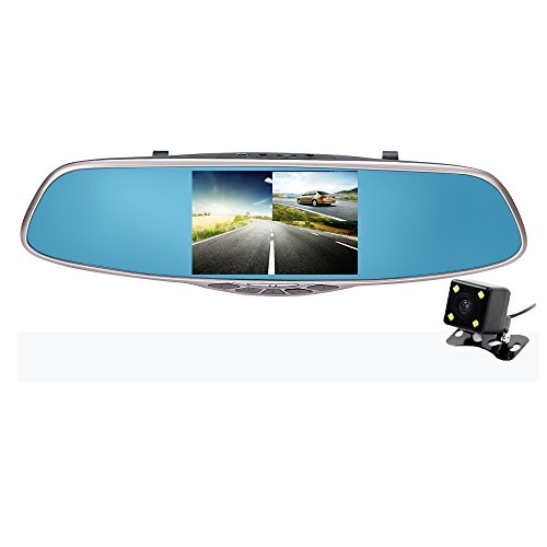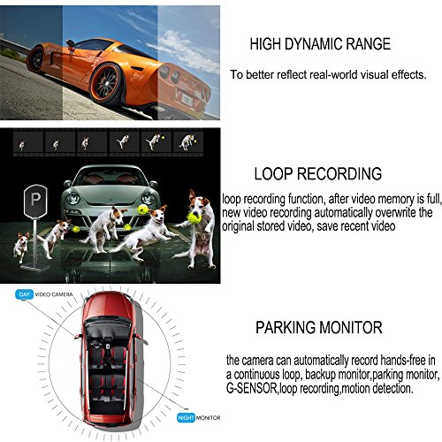 -. Feature : 180-degree rotating 170-degree viewing angle high-resolution wide-angle lens . Simultaneous recording front and rear - record every moment in HD 720P/1080P front and 720P rear resolution at 30 frames per second - automatic operation each time you get in your car. / 5-inch IPS screen allows a preview of what is being recorded,Dual-channel capability supports both front and rear-facing cameras; on-road video footage behind the vehicle is perfect for documenting rear-end accidents, dangerous drivers and other traffic events behind you. / 3.Back-facing camera can function as a high-definition rearview monitor, allowing maximum safety and precision when backing up or parking. Night vision for interior clips and shots; Built-in microphone / speaker function. / 4.Automatic safeguards: Automatic ignition/motion/crash detection and recording with G-sensor, monitoring while parking, automatic display off for energy saving, automatic device off after engine off, one-button emergency video recording and saving, one-button audio recording on/off. Automatic seamless video recording in loop to use the storage efficiently, with the earliest unlocked video clips being overwritten when reaching the storage card's maximal capacity. / Easy to install; discreet design integrates seamlessly with vehicle interior for continuous, non-distracting operation. Manufacturer Warranty Included 30 days money back guarantee - 18-month warranty