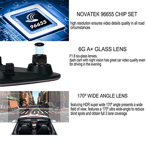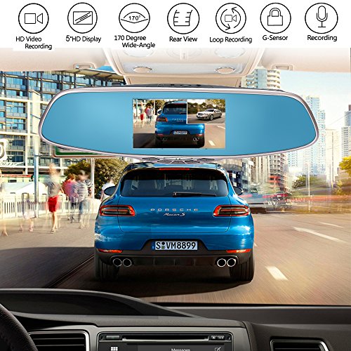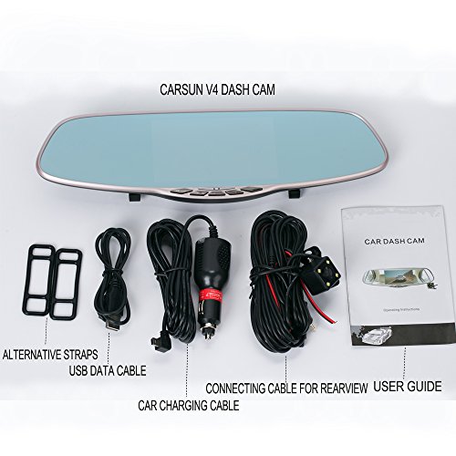 -. Title : Carsun Full HD 1080P with 5" IPS Screen, Dual Lens Car Camera,Rearview Mirror Design,Reverse Parking System