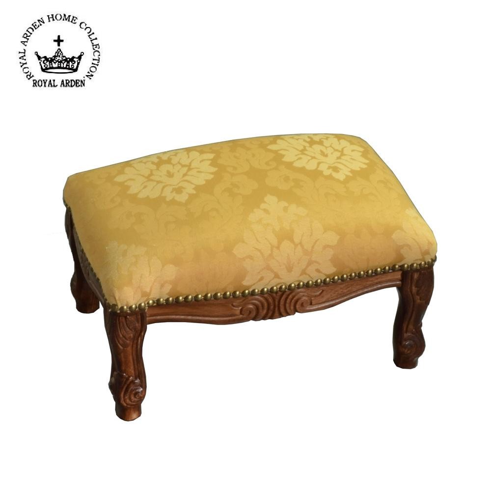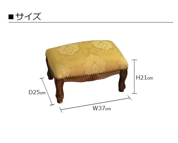 アンティーク調のおしゃれなスツールです。エレガントなお部屋にぴったり。 製造国:イタリア 素材・材質:脚:天然木ビーチ材ファブリック:ポリエステル52%、綿48% ※サプライヤー直送品 ご注文後3~4営業日後の出荷となります【商品名】ロイヤルアーデン イタリアスツール ミニスツール イエロー 茶脚 51470