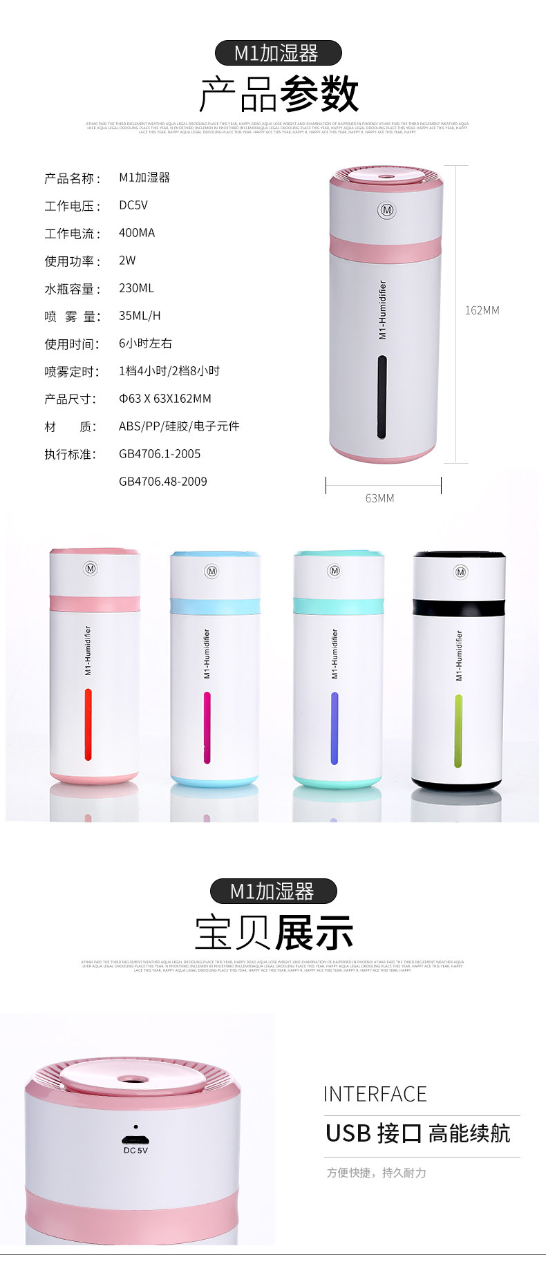 迷你USB空气加湿器学生宿舍办公室桌面静音车载小型香薰脸部加湿