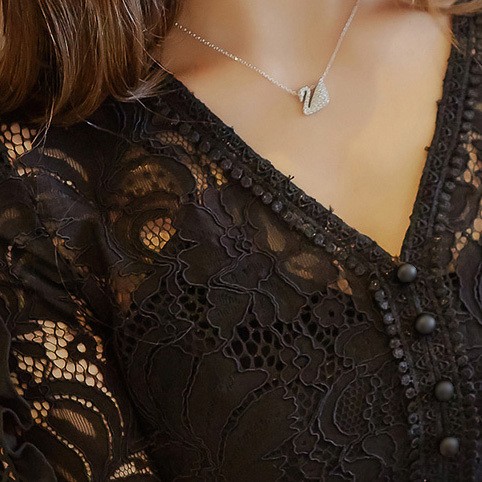 大人っぽいデザインに、レースとフリルで甘さをプラス。