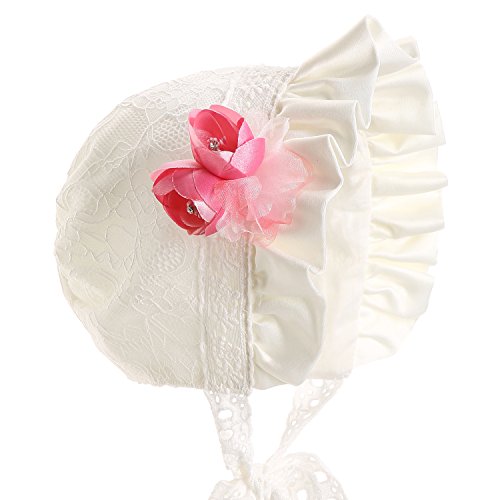 Binding : Apparel Product Description A bonnet is any of a wide variety of headgear for both sexes-most often female-from the Middle Ages to the present.As worn by women and girls,bonnets were hats worn outdoors which were secured by tying under the chin, and often which had some kind of peak or visor,took the place of protection from sun,prevent wind-chapping,hold the hair in place, protect styled hair or keep it tidy,the term has long been popular in both civilian life and in the Royal Regiment . Baby Bonnets are a time old tradition that carries into present day because of their elegance and functionality. They're offered in small to large sizes then tie at the chin with two silk ribbons for a more secure and comfortable fit. Carry the tradition in your family with a bonnet from Hanakimi you can't find anywhere else. For parties and photos, choose from baby girl bonnets for the perfect accessory to accent wisps and curls. Lace, netting, beads and bows add just the right touch to these handmade bonnets. XXS/Newborn Fit for 0-3 Months, XS/3M Fit for 3-6 Months, S/6M Fit for 6-12 Months, M/12M Fit for 12-24 Months, L/24M Fit for 24-36 Months, XL/36M Fit for 36-48 Months. 0