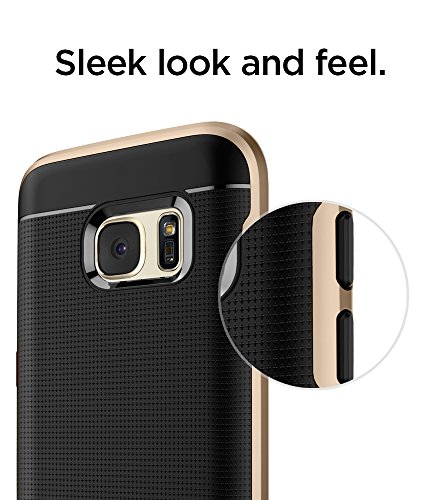 The Neo Hybrid case for the Galaxy S7 puts the focus on its stylized slimness and reinforced perimeter protection through key features of the polycarbonate bumper and TPU encasement. The metalized buttons are miniscule in size but hefty in style and provide fluid feedback for an easy press. The outside TPU flaunts a distinct pattern for extra grip.Feature