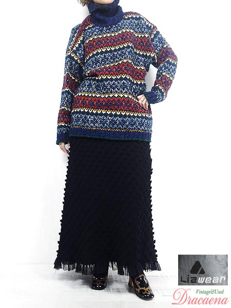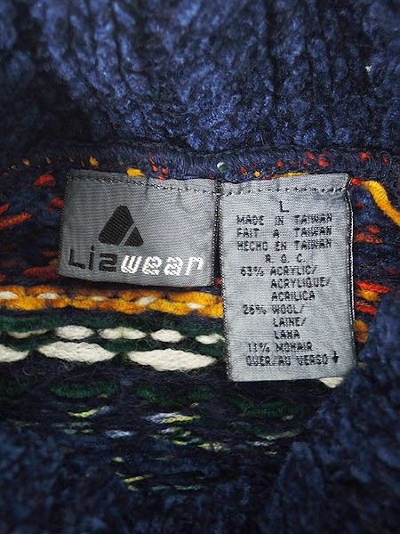 Ladies ブランドLiz Wear リズウェア カラー紺・カラフル メール便不可 コンディション★★★ モデル身長158cm 素材アクリル63%・ウール26%・モヘア11% 表記サイズL 実寸サイズ 着丈 70.5 cm 身幅 61 cm 肩幅 60 cm 袖丈 49.5 cm ※ウエスト・ヒップ以外は平置き採寸