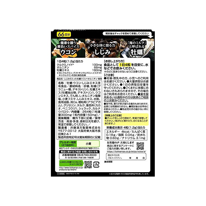 원본상품명: 井藤漢方製 しじみの入った牡蠣ウコン+オルニチン 用 264粒