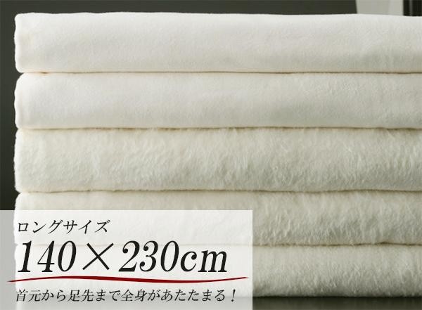 美しい光沢・滑らかな肌触りのシルクは、保温性や吸湿性などにもすぐれた天然繊維。軽くて柔らかな綿との混紡で、通常の毛布よりも長めの超ロングサイズです。首元に切り込みをデザインし、肩口を包み込むので首元から足先まで全身があたたまる毛布です。 |