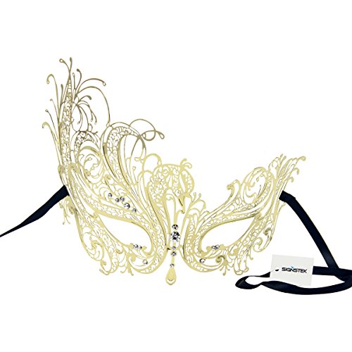 This mask is lovely comfortable around the eyes and not too small so it doesn't squash your face. The version of the gorgeous Anne black venetian metal masquerade mask, suitable for most face shapes and ties with satin ribbons. Feature pro environment and safe: metal material. Ultralight luxury eye mask. One size fits all. Fashion design: Unique, seduction and mystery. Superb rhinestones and shinning glitter deco. Special craftsmanship: No rusting, no flaking paint. No bleached, wear resistant. Comfortable wearing. Easy wear: High quality soft silk ribbon. Enable a secure and comfort fit. Specification: Theme: Venetian masquerade mask material: Metal material: Metal, rhinestone, silk ribbon size: Free size art: Venice luxury style color: Black feature: Half face masquerade mask certificate: All material available for sags.Feature