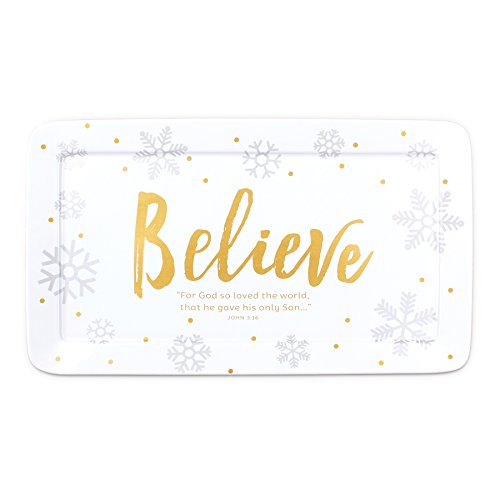 Lighthouse Christian Products White & Gold Rectangle Believe Ceramic Christmas Plate