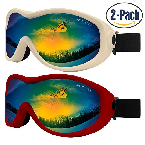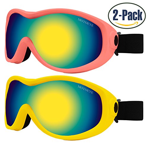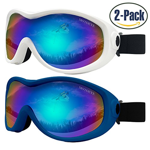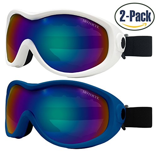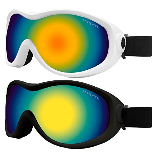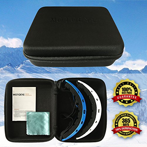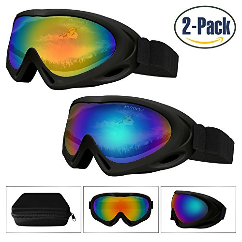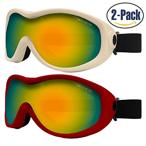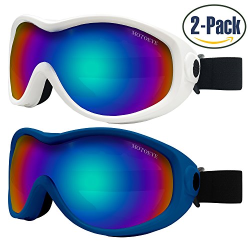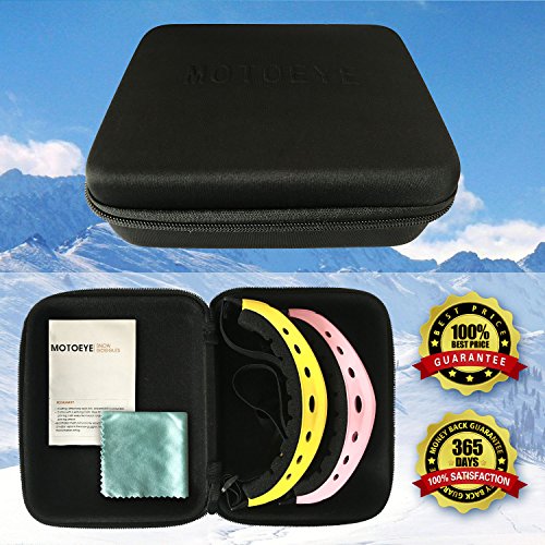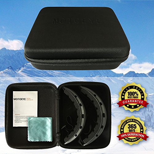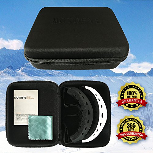 PACKAGE CONTENT 2 Motoeye Ski Goggles in different colors as pics show 1 piece of Nano-Microfiber Anti-fog Wipe Cloth 1 Protective Case User's Guide Paper 0