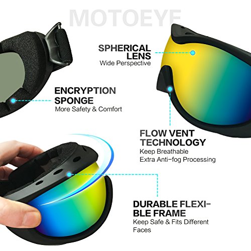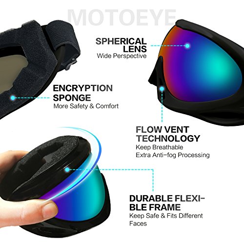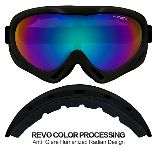 ABOUT MOTOEYE SKI GOGGLES This MOTOEYE ski goggles are designed for starting ski fans or other outdoor sports such as bicycling,motorcycling,hiking,fishing,climbing etc.Inexpensive but high cost-effective.