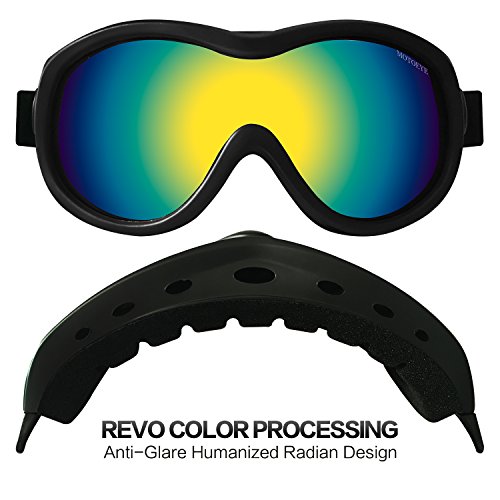 FUNCTION Anti-glare Lens, Anti-fog(By the use of the anti-fog wipe in package), 100% UV 400 Protection PC Lens, Wind-proof Design,Adjustable Strap, Flow Vent Technology(Extra anti-fog technology) Durable ABS Flexible Plastic Frame, Adjustable Strap, Revo Blue or Revo Red Processing Lenses,Mirrored.