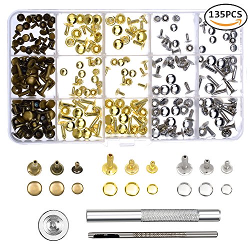 WXJ13 135 Sets 3 Sizes Single Cap Rivets Metal Leather Rivets with 3 Pieces Tool kits for Rivets Replacement, Leather Decoration