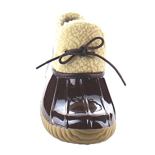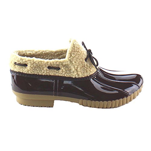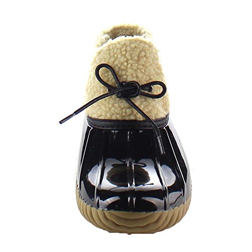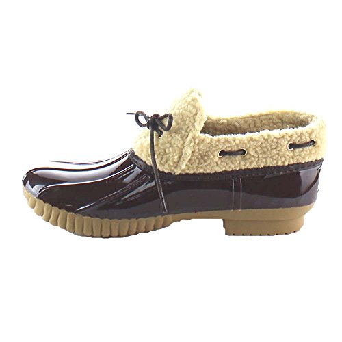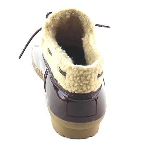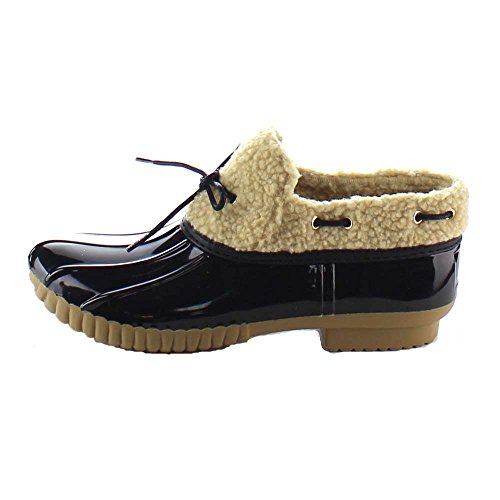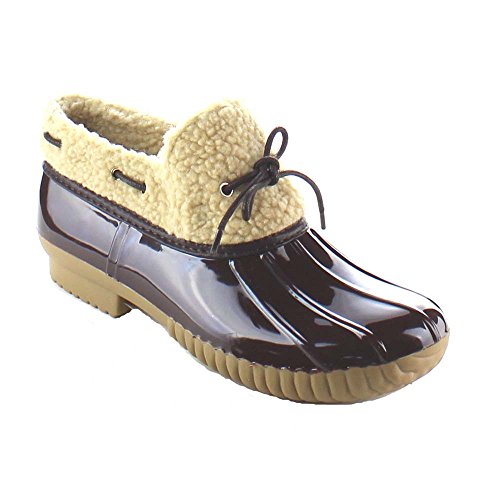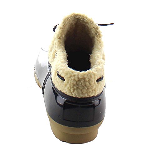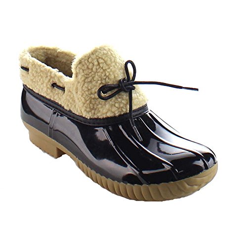 Product DescriptionShow off your season ready style in these fashionable duck ankle booties. These booties feature vegan faux fur shearling, waterproof function, stitching details, low heel and easily on/off.0
