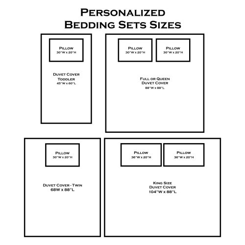 * Supersoft Plush Lightweight Microfiber Fleece Duvet Cover with snap closures on bottom Matching Pillow Case(s)* Toddler Size: 45"W x 60"L 1 Pillow * Twin Size: 68"W x 88"L 1 Pillow * Full / Queen Size: 88"W x 88"L 2 Pillows * King Size: 104"W x 88"L 2 Pillows * Pillow Size: 30"W x 20"L