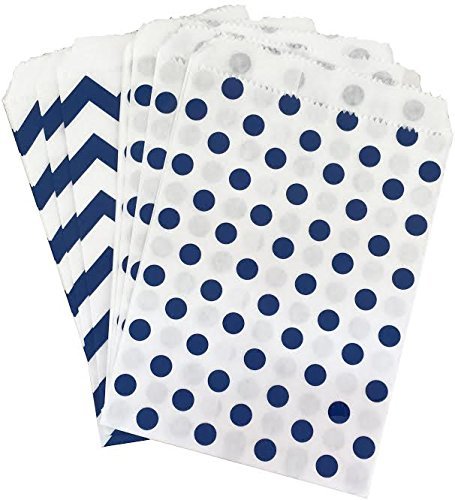 - Navy Blue and White Polka Dot and Chevron 5.5 x 7.5 Treat/Favor Paper Bags