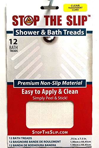 Slipping and falling can be prevented by using Bath Safety Treads. The treads provide a safe, comfortable surface in slippery areas. These clear vinyl non-skid strips are .75" x 7.5", are packaged 12 pieces per set, and can be easily cut to a different size.