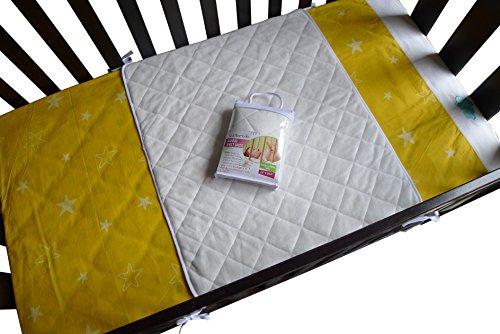 -. Feature : LONGER TIES & LARGER SIZE - Unlike our competitor's sheet saver that is so small and with short ties, our ties are much longer to make it easier. At 24" x 29.5", this means more coverage to prevent from soiling and it takes a longer time for your baby to outgrow the sheet saver. / ONE OF OUR SATISFIED CUSTOMERS' COMMENTED - "It's comfy, waterproof and not very thick, which is good for my baby's safety. The little padding adds the much needed comfort (especially on a hard PNP mattress) while still being firm enough to be safe. The top is soft and absorbent. Already washed and dried it more than a dozen times and it came out like-new! No clumps, no stitching coming undone and it didn't melt/peel." / PROTECT SHEET AND MATTRESS FROM SOILING - When accidents do happen, simply remove the sheet saver rather than the entire crib sheet or mattress. Then, just toss it in the machine and oh yes, it is dryer friendly too! / NATURAL COLOR, UNBLEACHED & UNDYED BAMBOO TOP LAYER - For babies with sensitive skin or chemical sensitivities, this is a great option. Breathable waterproof backing is made from non-toxic TPU and vinyl free. / 100% NO RISK - If you're not completely satisfied, we will make it right or your money back. One of our reviews mentioned, "I must also add that this company provided me with the most incredible customer service I've ever experienced. They want you to be 100% satisfied with their product and they will do everything in their power to ensure that you are. Backed by outstanding customer service."