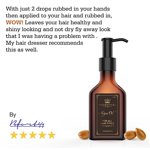 MAJESTIC argan Oil is lightweight and gets absorbed quickly. A few drops is all you need to style your hair and provide ultimate conditioning, smoothness and protection to your hair.