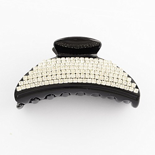 This stunning hair clip is the frosting on the cake for a party outfit, or perfect to glam up your everyday look. The rhinestones are offset by the glossy black clip for drama and maximum sparkle. Wear to a wedding, or shimmer about your everyday business.Feature