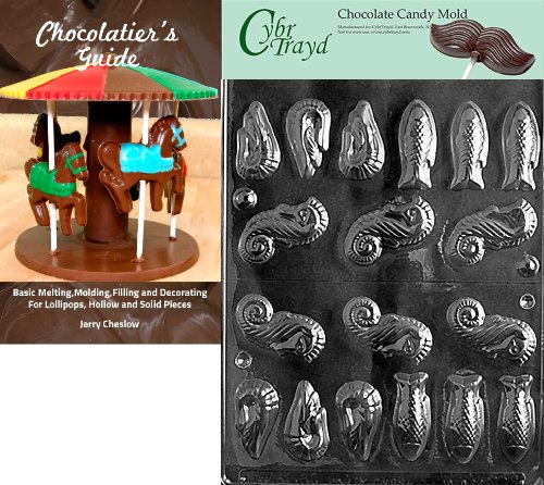 Cybrtrayd "3D Shrimp/Seahorses/Fish" Nautical Chocolate Candy Mold with Chocolatier's Guide Instructions Book Manual