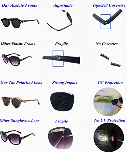 -. Feature : Material:Imported Italian acetate,skin-friendly,environmental,shiny and do not fade / Hinges:5 layer hinge provides durability and smoothness to the structure of the frame / Integral Nose Pads:Integral design with Environmental and skin-friendly materials, make it comfortable and no pressure to wear the glasses / Injected corewire reinforces integrity of the frame, allowing for long-lasting adjustments / Lens:Polarized lens help to eliminate reflected and scattered glares,100% UV Protection