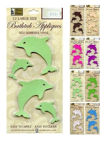 Better Home 12 Fun Dolphin Shaped Bath Tub/ Shower Walls Appliques Safety Non Slip Treads, Latest Decoration Colors (light Green)
