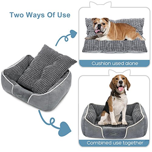 Pecute Deluxe Pet Bed for Cats and Small Medium Dogs Rectangle Cuddler with Soft Detachable Cushion Machine Washable