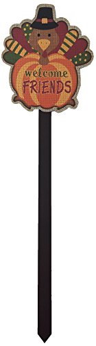 - Includes (1) Colorful Wooden Turkey on a brown Yard Stake and says "Welcome Friends" (22"x6")