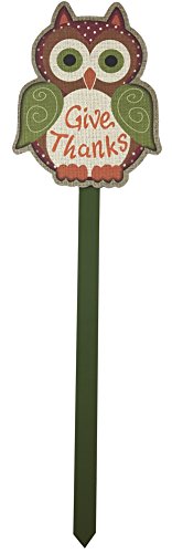 - Includes (1) Green/Orange/Browne Colored Wooden Owl on a green Yard Stake and says "Give Thanks" (22"x6")