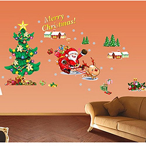 Santa Claus Christmas Tree Merry Christmas Wall Stickers DIY Mural Art Decal Self Adhesive Removable PVC Wall Paper Decor,19.7 inch*27.6 inch Original