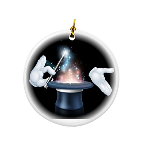 Rikki Knight Magician Wand and Top Hat Trick Design Round Porcelain Two-Sided Christmas Ornaments