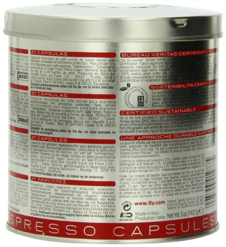 Studio : illy Publisher : illy Binding : Grocery Product Description From the moment you note its sweet aroma to the time you savor its perfectly balanced flavor and rich, velvety crema, you'll know you've entered a new era of espresso with iperEspresso. Whichever roast you choose, medium, dark or decaffeinated you will enjoy illy's legendary single blend of 100% Arabica coffee. Discover for yourself why is is the preferred choice of renowned chefs around the world. illy iperEspresso capsules work exclusively with the Francis Francis X7 and X8 espresso machines. 0
