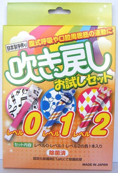 【使用上の注意】 ・一本の使用限度回数を一週間で考え、使った後は捨ててください。 ・使用後は吹き口部分を除菌し、紙コップ等に使用者名を明記し、袋状部を上にして収納し本商品を乾燥させた上、清潔な場所に保管するように努めて下さい。 ・吹き口をくわえたまま走ったりしないでください。転倒などによる事故の危険があります。 ・吹き口を吸わないでください。誤って飲み込むと窒息などの危険があります。 ・誤飲の危険がありますので、吹き口部分が柔らかくなり、吹き口が外れた場合は使用を中止してください。 ・思わぬ事故の危険がありますので、火気・人の顔・動物などに向けて吹かないでください。 ・ぶつけたり、振り回すなど乱暴に使用しないでください。 ・吹き戻しには針金を使用しています。思わぬケガをする恐れがありますので、分解・改造は行わないでください。また針金を指などに巻きつけたりしないでください。 ・吹き口はいつも清潔にしておいてください。 ・使用後は、お子様の手に届かない所に保管してください。 ・使用中、身体に異常を感じたら、無理して使用しないでください。 |