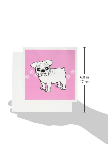 3dRose Cute Bulldog White Coat - Cartoon Dog - Pink with Pawprints - Greeting Cards, 6 x 6 inches, set of 6 (gc_40968_1)