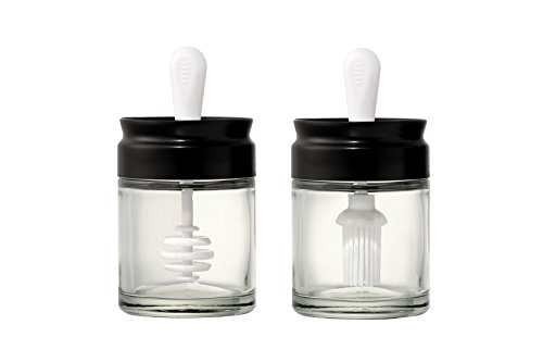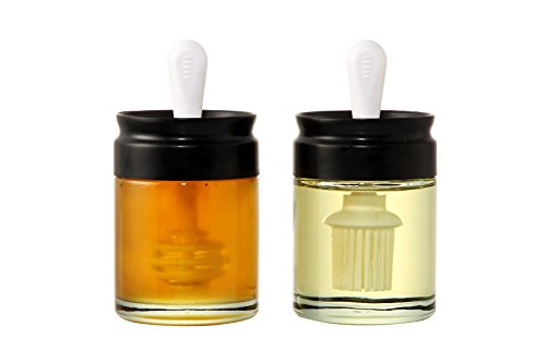Glass Honey Pot With Dipper And Glass Oil Jar With Silicone Basting Brush - 2 Piece Set - 110mL/3.75oz