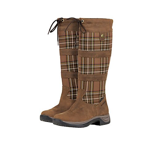 Studio : Weatherbeeta USA Inc. Publisher : Weatherbeeta USA Inc. Binding : Misc. Product Description Dublin Ladies River Plaid Boots Our best-selling River Boot is now available in a handsome plaid pattern. The full-grain waterproof leather upper with plaid canvas inserts is lined with a waterproof and breathable HBR(R) membrane to about 6 inches up the calf. The breathable nylon lining and moisture-wicking RCS footbed provide all-day comfort in any conditions. Lightweight, durable Tough Tech sole fits into a stirrup for riding. The adjustable top lace and elastic gusset accommodate a variety of calf widths. Color: Dark Brown; sizes: Ladies' 6-10, 11. Features: Best-selling River Boot available in a handsome plaid pattern Full-grain waterproof leather upper with plaid canvas inserts Lined with a waterproof and breathable HBR(R) membrane to about 6 inches up the calf Breathable nylon lining and moisture-wicking RCS footbed provide all-day comfort in any conditions Lightweight, durable Tough Tech sole fits into a stirrup for riding Adjustable top lace and elastic gusset accommodate a variety of calf widths Item Specifications: Color: Dark Brown Plaid Size: 6 6.5 7 7.5 8 8.5 9 9.5 10 0