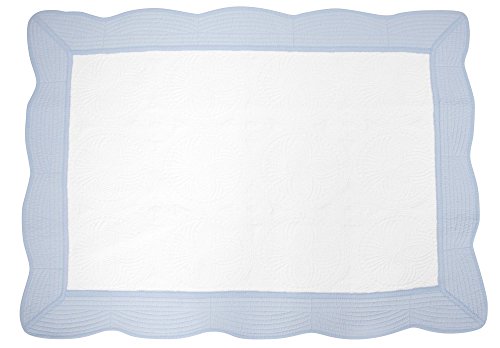 Studio : EPGM Publisher : EPGM Binding : Apparel Product Description This beautiful scalloped baby quilt measures 36" x 48". It's perfect as a decorative nursery room accent and doubles as a crib/mattress cover for toddler beds. We hand-select our cotton, using only the finest fibers available, so that all of our blankets are irresistibly soft comfortable to meet your little one's needs.