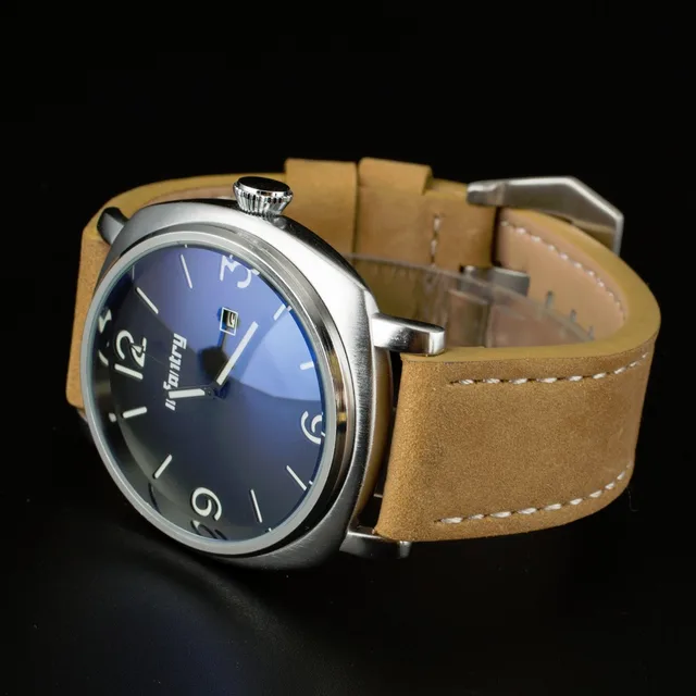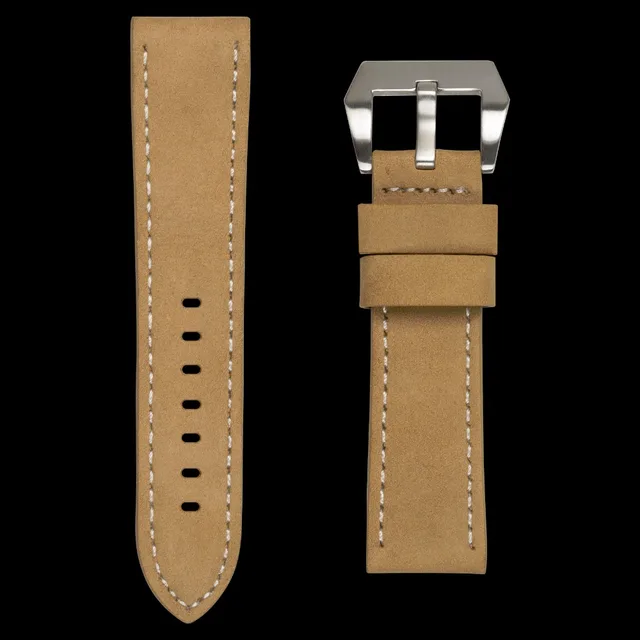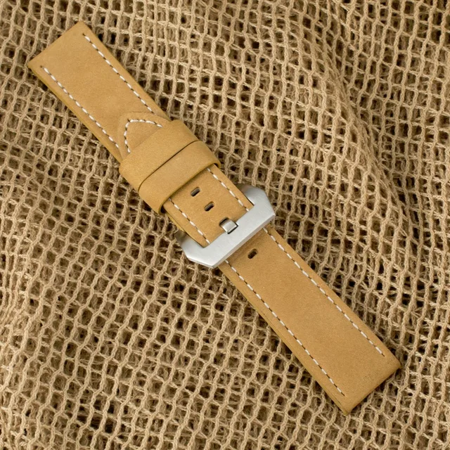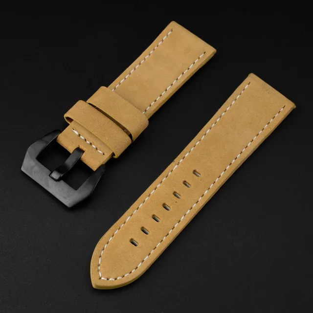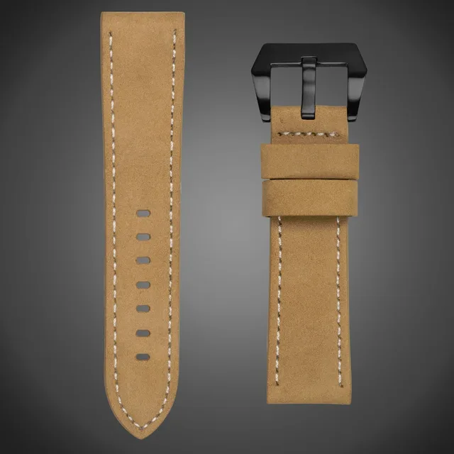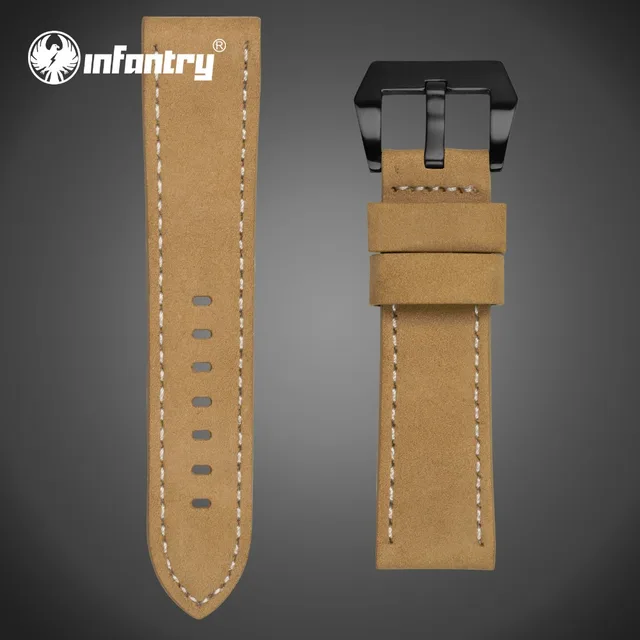 22 미리메터 라이트 브라운 방수 가죽 스트랩 손목 남성 교체 시계 스트랩 블랙/실버 버클 보병 시계 밴드