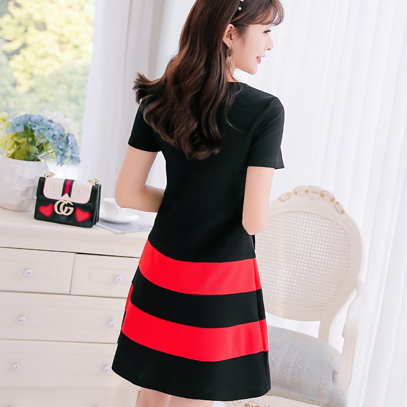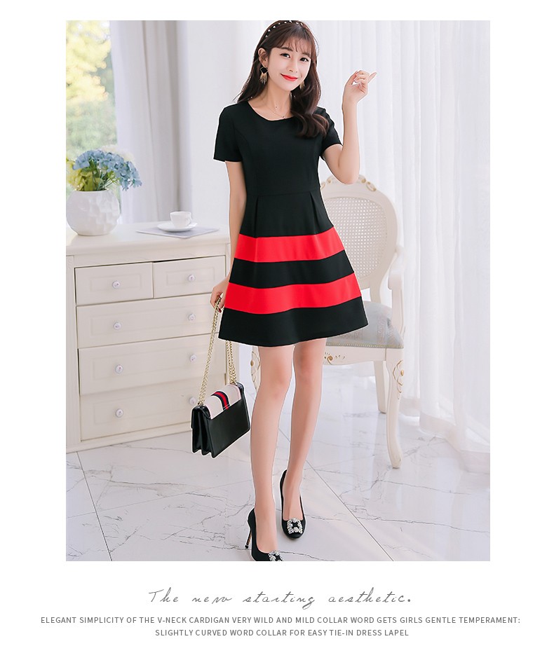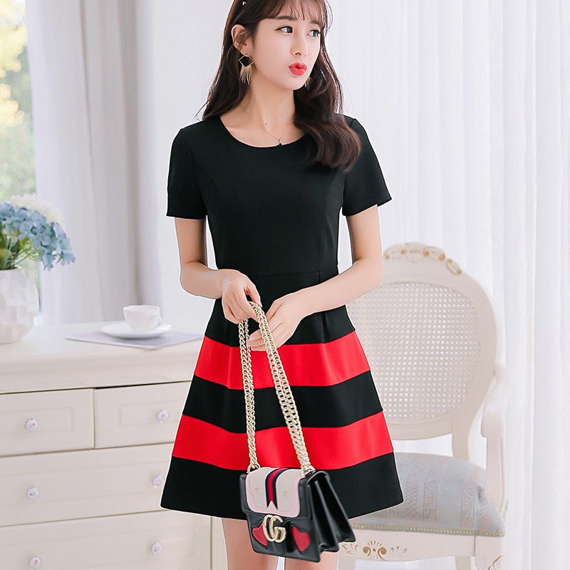 ブラック×レッドの鮮やかな配色が目を引くふんわりワンピース