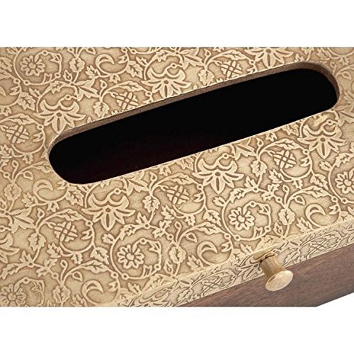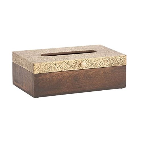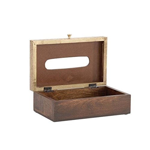 Deco 79 28765 Rectangular Brass and Wood Tissue Box, Darkbrown/Brass