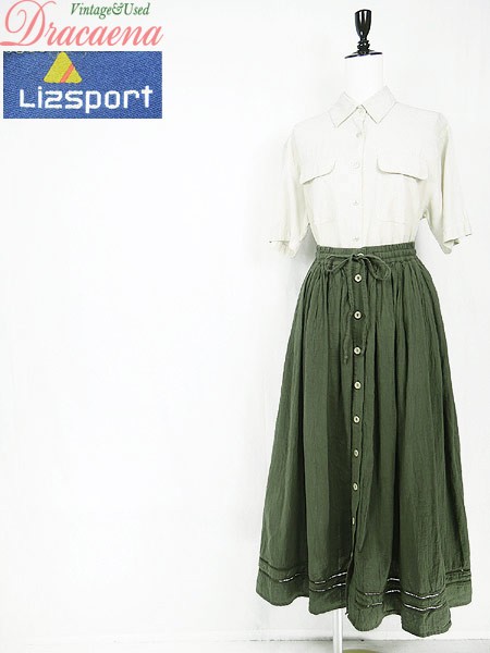 Ladies ブランドLiz Sport リズスポーツ カラーカーキ メール便不可 コンディション★★★ 素材コットン 表記サイズM スタッフコメント裏地なし 実寸サイズ 着丈 86 cm ウエスト 60cm 〜 82cm (24インチ〜32インチ) ※ウエスト・ヒップ以外は平置き採寸