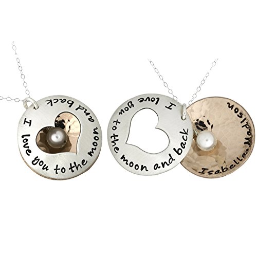 -. Title : Personalized I Love You to the Moon and Back Charm Necklace. Customize a Sterling Silver Disc and an Rose Gold Plated Disc. Add a Freshwater Pearl or Birthstone. Choice of Sterling SIlver Chain