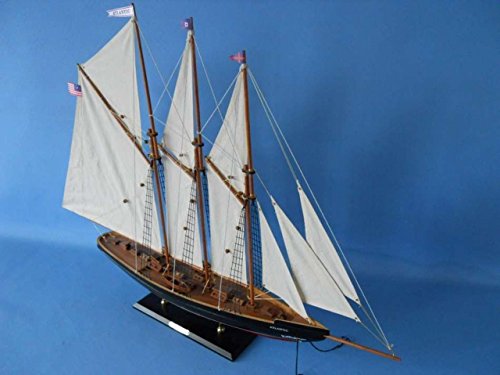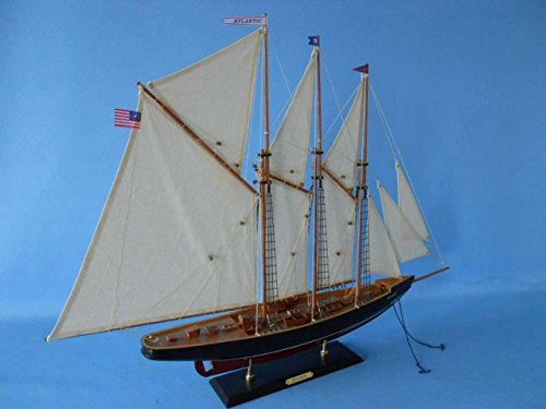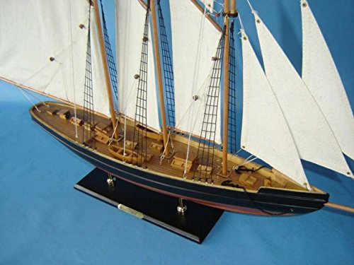 Studio : Handcrafted Model Ships LLC Publisher : Handcrafted Model Ships LLC Binding : Toy Product Description This model sailboat is beautifully painted and made of wood. These model yachts of the famous Atlantic schooner add grace and class to the nautical decor of any room. Seated upon a shelf or mantle, the simple yet finely-crafted features and understated elegance of these wooden model sailboats subtly inspire a nautical tone and racing spirit in any office, den or living room with the delicate touch of an ocean breeze. 0