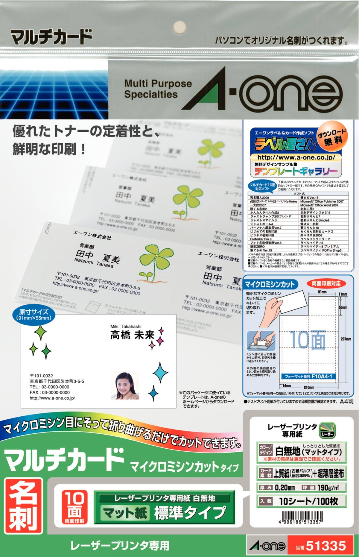 A-One multi-card business card 100 sheets of 51 335