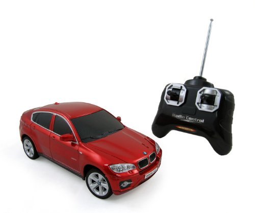 BMW X6 Officially Licensed Radio Control R/C Sports Car. Full Function Radio Controlled; Forward, Reverse, Stop, Left & Right Steering. Realistic & Stylish. Working Headlights & Rear lights. Race around the kitchen, backyard or anywhere with real world car maneuvering such as forward, reverse, right and left turns made on a dime. Speed: 8-10 mph Scale: 1:24 Remote Distance: 30 feet. Colors vary. 5 x AA Batteries required (not included).